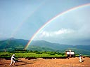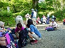 | 今年の寝床は屋根裏。雨が屋根を激しく打ちたたく音を聞きながらうつらうつら。暫くすると「虹!」の声で目が覚める。雨雲は小屋の周りだけ、夕日が富山平野方向から差し込みどしゃ降りだが日向!虹は何時に無く明瞭。二回目の夕食に並び、夕食。いつもの通り、ここの食事は...。食事後、雨の止んだ外で写真をとる。 | ||