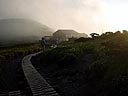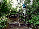 | 10分も歩かないうちに心臓がコトコトいい、息がはぁはぁ。遂に15分歩いてダウン。20分間の大休止。しかし、歩き出すと再び心臓がコトコト息ハァハァ。こんな事は初めて。再び20分間の大休止。やはり、どこか体が悪いのかと大変不安になる。(内心:せっかくの休み、何故、俺はこんな苦しみをあじわっているのか!台風も来ていると言うのに!) トータル40分の大休止後、「今度、心臓がコトコト息ハァハァが起きたら下山」と心に決めて、再び歩き出す。その後は、いつもより快調になる。台風到来で気乗りしていなかった事は確か。しかし、そんな事で体調が崩れるのか? | ||