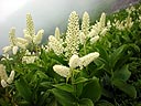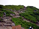 | 弓折分岐の少し前で、先に行ってしまった筈の源流カップル出現。雷鳥出現を知らせてくれた。あいにく少し奥のガスった草地にいて写真がうまく撮れそうもない。源流カップルは、足下で砂あびを見たらしい。かなり興奮気味。「今度は鏡ダ。待ってるから」と言われたが、彼らとはこれが最後であった。 | ||